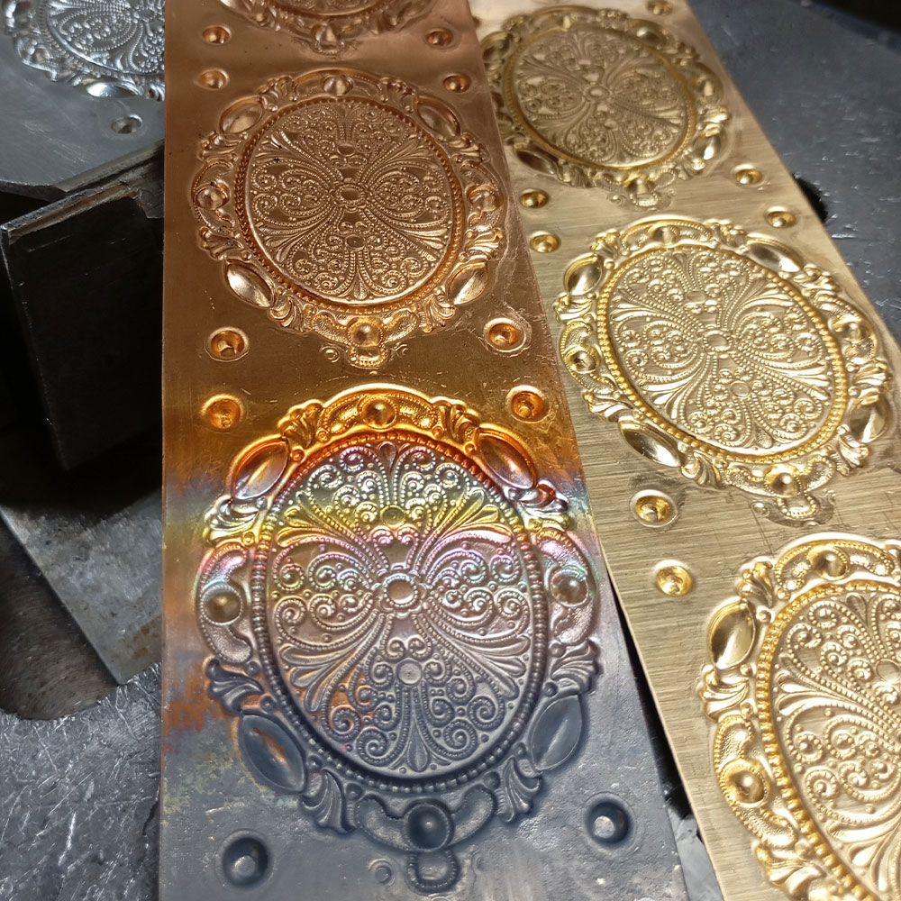 Entdecken Sie die neuesten Schmuck-Prägeteile und filigranen Prägeteile, die handwerkliche Perfektion und moderne Eleganz vereinen. Unsere aktuellen Kollektionen bieten exquisite Designs, die durch detailreiche Prägungen und hochwertige Materialien bestechen. Ideal für Schmuckmacher und Kreative, die ihren Kreationen einen einzigartigen und edlen Touch verleihen möchten. Bleiben Sie im Trend mit unseren innovativen und kunstvoll gestalteten Prägeteilen.