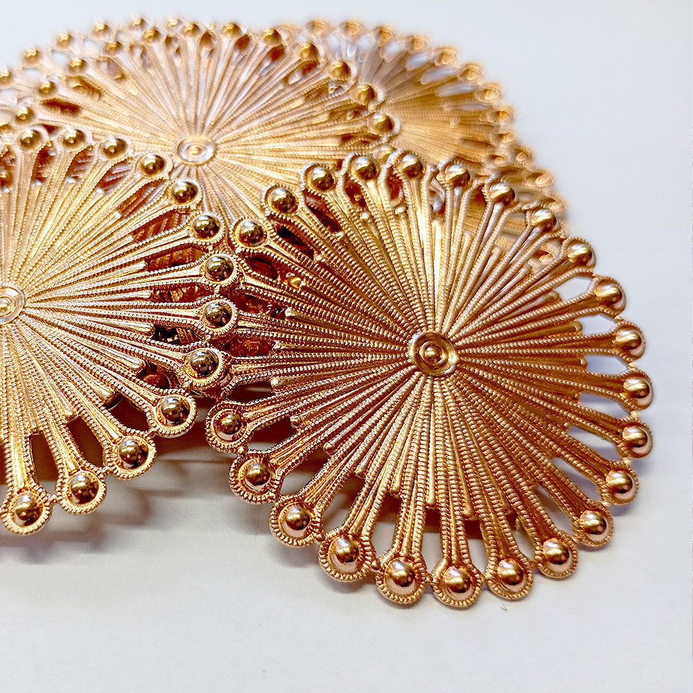 Our delicate embossed parts are specifically designed for customers in the traditional costume (Trachten) sector. Their detailed and artistic designs are ideal for traditional jewelry and accessories used in Trachten fashion. Your creativity knows no bounds. - Trendy Patterns for Modern Fashion